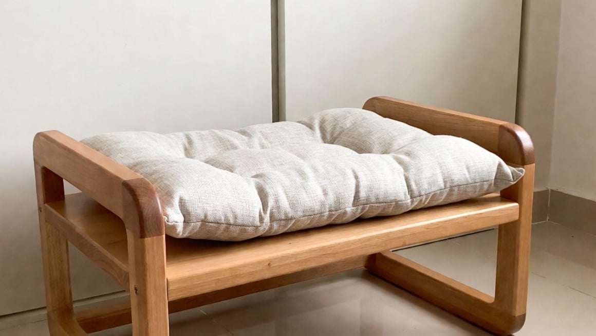 Stylový pelíšek z masivního dřeva s vyjímatelným polštářkem. Díky zvýšenému okraji poskytuje kočce pocit bezpečí a tepla. Hodí se do každého moderního interiéru.